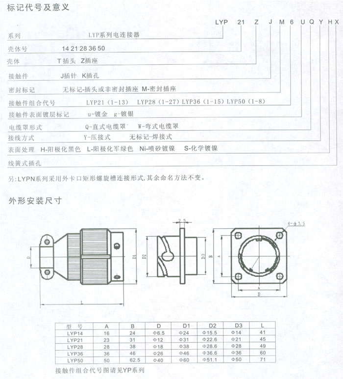 LYP接點(diǎn)型譜圖(裝針絕緣體插合面視圖)