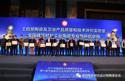 論壇大會上,還進行了頒獎活動。工信部陶瓷及衛(wèi)浴產(chǎn)品質(zhì)量和技術(shù)評價實驗室、全國建筑材料工業(yè)陶瓷專業(yè)情報信息網(wǎng)聯(lián)合主辦了2017年度建筑衛(wèi)生陶瓷行業(yè)“質(zhì)量突出貢獻獎”、“創(chuàng)新產(chǎn)品獎”、“綠色陶瓷磚”、“綠色衛(wèi)生陶瓷”、“智能產(chǎn)品獎”、“綠色節(jié)能窯爐”、“智能創(chuàng)新獎”、 “清潔生產(chǎn)優(yōu)秀企業(yè)獎”,“2017年度最具影響力色釉料品牌”,“2017中國建筑衛(wèi)生陶瓷裝備科技創(chuàng)新獎”,“2017中國建筑陶瓷年度最佳產(chǎn)品設(shè)計獎”,“ 2017中國衛(wèi)生陶瓷年度最佳產(chǎn)品設(shè)計獎”的評價活動,大會為獲獎企業(yè)隆重頒獎。同時由國家陶瓷及水暖衛(wèi)浴產(chǎn)品質(zhì)量監(jiān)督檢驗中心聯(lián)合全國建筑材料工業(yè)陶瓷專業(yè)情報信息網(wǎng)共同組織開展的建筑衛(wèi)生陶瓷產(chǎn)品質(zhì)量測評活動“年度精英杯”獲獎企業(yè)也受到表彰。常務(wù)副院長李轉(zhuǎn)宣布獲獎企業(yè)名單并主持頒獎活動。