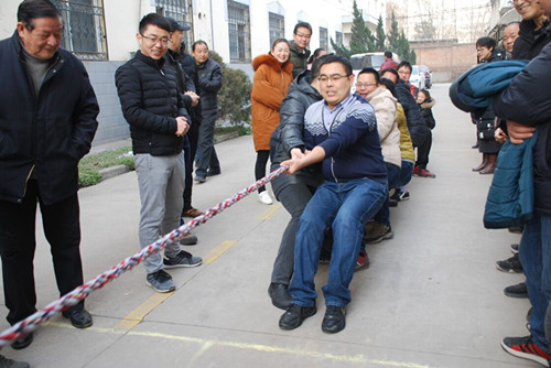 在新春佳節(jié)即將來(lái)臨之際,我院組織豐富多彩的活動(dòng)迎接新年。 2月9日,院舉辦離退休人員迎新春座談會(huì)和趣味文體活動(dòng)。院長(zhǎng)、黨委書(shū)記梁振海及副院長(zhǎng)、黨委副書(shū)記、紀(jì)委書(shū)記白戰(zhàn)英與40名離退休人員匯集一堂,歡慶新春佳節(jié)。梁振海代表班子成員向參會(huì)的離退休老同志致以節(jié)日的問(wèn)候和衷心的祝愿,老同志們也感謝院對(duì)離退休人員的關(guān)懷。為了讓大家放松身心,老有所樂(lè),會(huì)后工會(huì)還組織了趣味文體活動(dòng),老同志們熱情高漲,盡展才華,即豐富了大家的生活又使大家感受到了歡樂(lè)。 2月12日,院組織了迎新春職工體育活動(dòng)。本次運(yùn)動(dòng)會(huì)共有7個(gè)參賽隊(duì)。項(xiàng)目有拔河、趣味保齡球、夾豆子、夾乒乓球、神投手等。員工們以飽滿的熱情和昂揚(yáng)的斗志精誠(chéng)團(tuán)結(jié)、頑強(qiáng)拼搏。最為精彩激烈的要數(shù)拔河比賽。比賽前,各工會(huì)小組紛紛組織好自己的隊(duì)伍,隊(duì)員們個(gè)個(gè)精神抖擻,團(tuán)結(jié)一心,奮力拼搏。當(dāng)比賽哨聲一響,無(wú)論是場(chǎng)上還是場(chǎng)下,員工們都非常給力,富有節(jié)奏的吶喊聲、加油聲,使人感到震撼,比賽過(guò)程中常出現(xiàn)勢(shì)均力敵的精彩“拉鋸戰(zhàn)”。經(jīng)過(guò)緊張激烈的角逐,機(jī)械裝備隊(duì)獲第一名;條件保障公司隊(duì)獲第二名;窯具廠隊(duì)和機(jī)械廠隊(duì)獲并列第三名。 隨后,五樓會(huì)議室分別組織了趣味保齡球、夾豆子、夾乒乓球、神投手等比賽,大家歡聚一堂,充分享受趣味運(yùn)動(dòng)會(huì)帶來(lái)的歡樂(lè)。