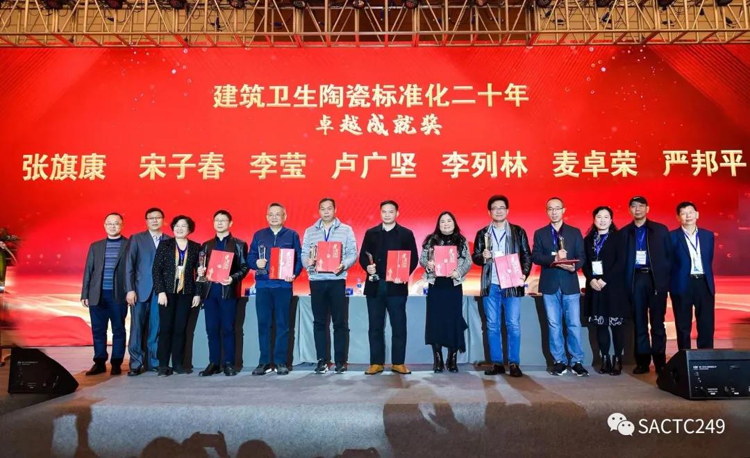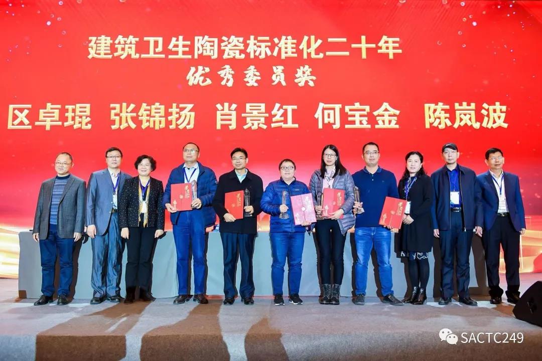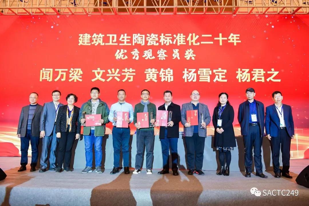 會上還對全國建筑衛(wèi)生陶瓷標準化技術委員會二十年先進人物進行了表彰,授予:尹虹、繆斌、王巍建筑衛(wèi)生陶瓷標準化工作二十年功勛人物獎;張旗康、宋子春、李瑩、盧廣堅、李列林、麥卓榮、嚴邦平建筑衛(wèi)生陶瓷標準化工作二十年卓越成就獎;區(qū)卓琨、張錦揚、肖景紅、何寶金、陳嵐波建筑衛(wèi)生陶瓷標準化工作二十年優(yōu)秀委員獎;聞萬梁、文興芳、黃錦、楊雪定、楊君之建筑衛(wèi)生陶瓷標準化工作二十年優(yōu)秀觀察員獎。