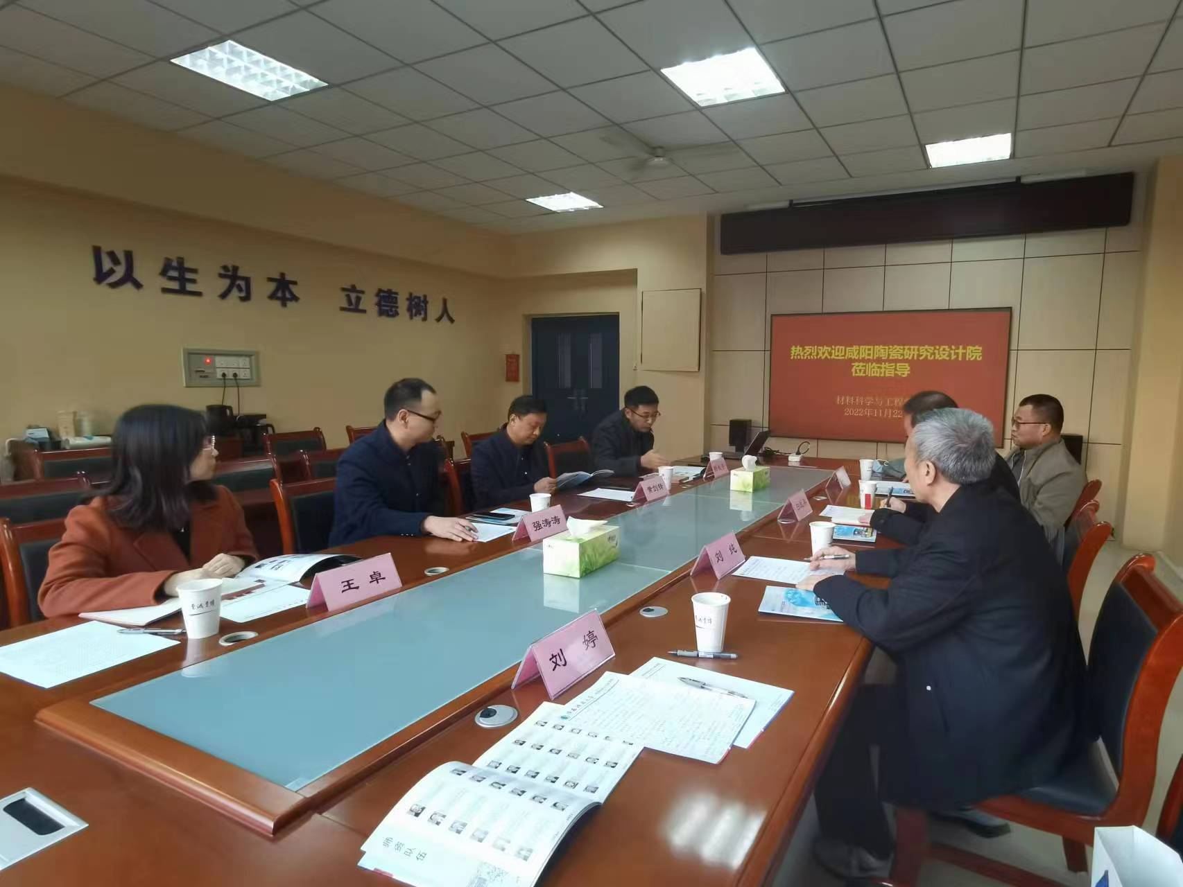 2022年11月22日,咸陽陶瓷研究設(shè)計(jì)院有限公司副院長白戰(zhàn)英、科研管理部主任劉純、研究所所長成智文、劉婷一行到陜西科技大學(xué)進(jìn)行交流,陜西科技大學(xué)副校長黃劍鋒、材料科學(xué)與工程學(xué)院黨委書記楊長安、院長朱建鋒、副院長王卓和前沿科學(xué)與技術(shù)轉(zhuǎn)移研究院常務(wù)副院長強(qiáng)濤濤等人熱情接待,雙方就近幾年各自的技術(shù)積累和發(fā)展規(guī)劃進(jìn)行了交流,以期雙方能發(fā)揮各自優(yōu)勢,加強(qiáng)進(jìn)一步合作,共創(chuàng)美好未來。