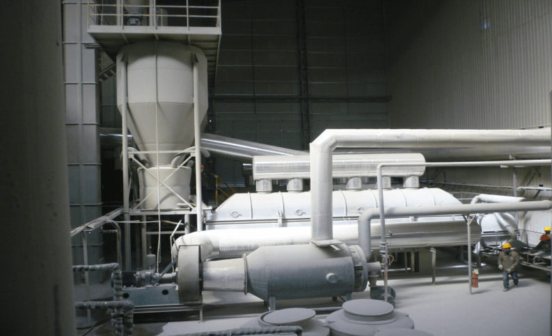我院研究的陶瓷磚新型干法短流程工藝與傳統(tǒng)的濕法工藝比較,以立式干磨機(jī)替代濕法球磨機(jī),以空氣懸浮態(tài)造粒機(jī)和振動(dòng)流化干燥設(shè)備替代濕法噴霧干燥塔,生產(chǎn)制備陶瓷磚壓型粉料。