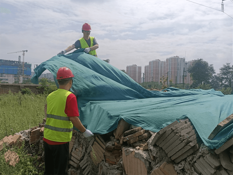 對園區(qū)南空地上存放的保溫磚表面進(jìn)行防塵防雨覆蓋,以免造成環(huán)境污染。