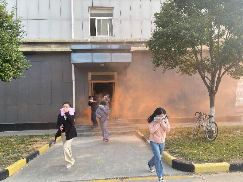 培訓(xùn)后,按照安排安環(huán)部迅速組織各部門安全員、新員工、保安保潔及餐廚人員40多人在辦公樓展開滅火逃生演練,隨著一聲“著火了”大家有序左手用濕毛巾捂鼻口右手摸著墻冒著煙霧快速從辦公樓逃生門魚貫而出。